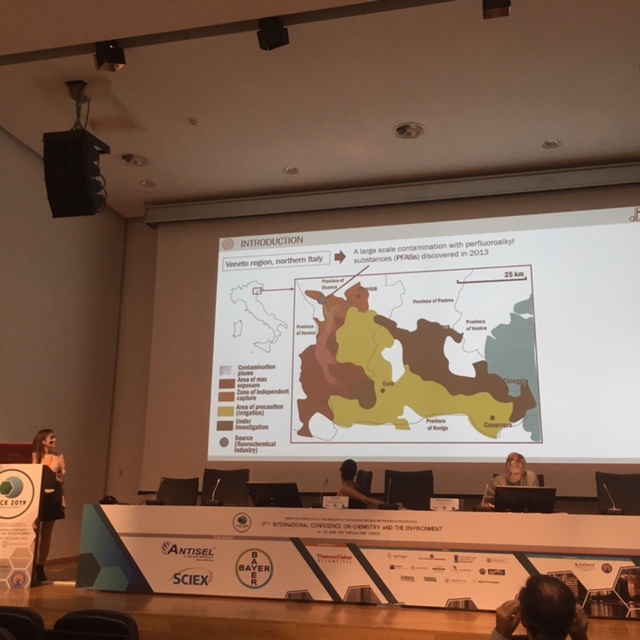 Two, in particular, the proposed contributions: a poster entitled "A novel holistic approach to the governance of environmental pollution events from PMOC", aimed at illustrating the generic objectives and operational actions of the project, and a conference speech titled "Uptake and translocation of perfluoroalkyl acids (PFAAs) in red chicory grown under varying contamination conditions: a greenhouse study", which highlighted the first results of the tests of perfluoro-alkyl substances in red chicory plants grown in greenhouses under controlled conditions.
